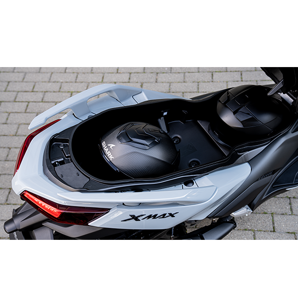 Además del color específico de su carrocería, los reposapiés de aluminio y un asiento especial, la XMAX 300 Tech MAX también incorpora un nuevo silenciador más ligero con un acabado de alta calidad, así como una nueva toma USB de tipo C en la guantera delantera para poder cargar tus dispositivos. Y para proporcionar mayor visibilidad, dispone de una nueva señal de parada de emergencia. ¡Vive la experiencia MAX!