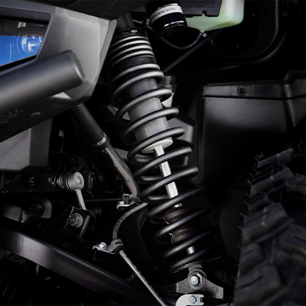 • Front suspension system: Independent double wishbone suspension with anti-roll bar, wheel travel 361 mm with FOX QS3 preload reservoir.