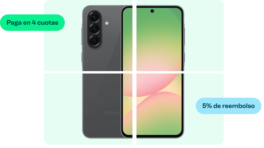Descubre además la opción de Pago en 4 cuotas3 y recibe un 5% de reembolso4 en productos seleccionados.