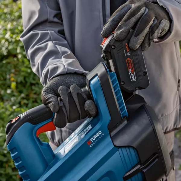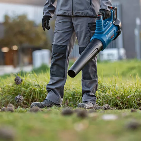El soplador de hojas a batería GBL 18V-750 Professional, con potente motor Brushless sin escobillas y ventilador axial, genera un caudal de 780 m³/h y una velocidad del aire de hasta 198 km/h. Además, cuenta con una batería ProCORE18V ≥ 5,5 Ah. Su regulador de velocidad te permite adaptar la gran potencia de la herramienta y ajustar así de forma óptima su autonomía y nivel de ruido. Con bajo nivel de ruido y sin emisiones, el soplador de hojas a batería es la herramienta perfecta para trabajar en zonas residenciales u otras zonas sensibles al ruido. Gracias a su diseño ergonómico y ligero, el soplador de hojas te permite trabajar durante largos periodos de tiempo.