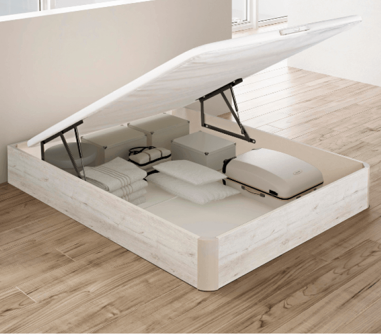 El canapé abatible ofrece doble funcionalidad: descanso cómodo y almacenamiento adicional. Permite aprovechar el espacio bajo el colchón para guardar ropa de cama, ropa de temporada u otros objetos, manteniendo tu habitación ordenada y funcional.